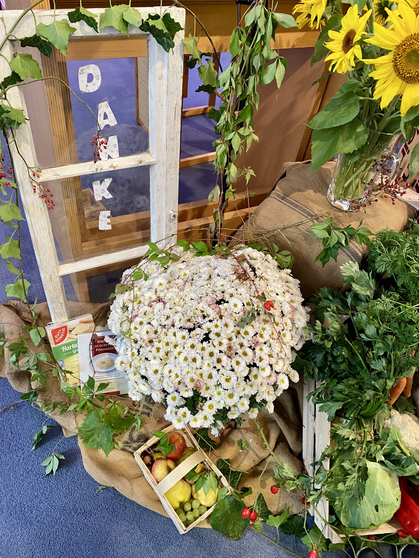 "Danken ist Zurückkehren zum Helfer", so Köhler in der Predigt. Darum feiern wir Erntedank. Am Sonntag mit vielen Gaben vor dem Altar. Vieles ist selbstverständlich geworden. Er rief dazu auf,  viel mehr dankbar zu sein für Alltägliches: Für das tägliche Brot.