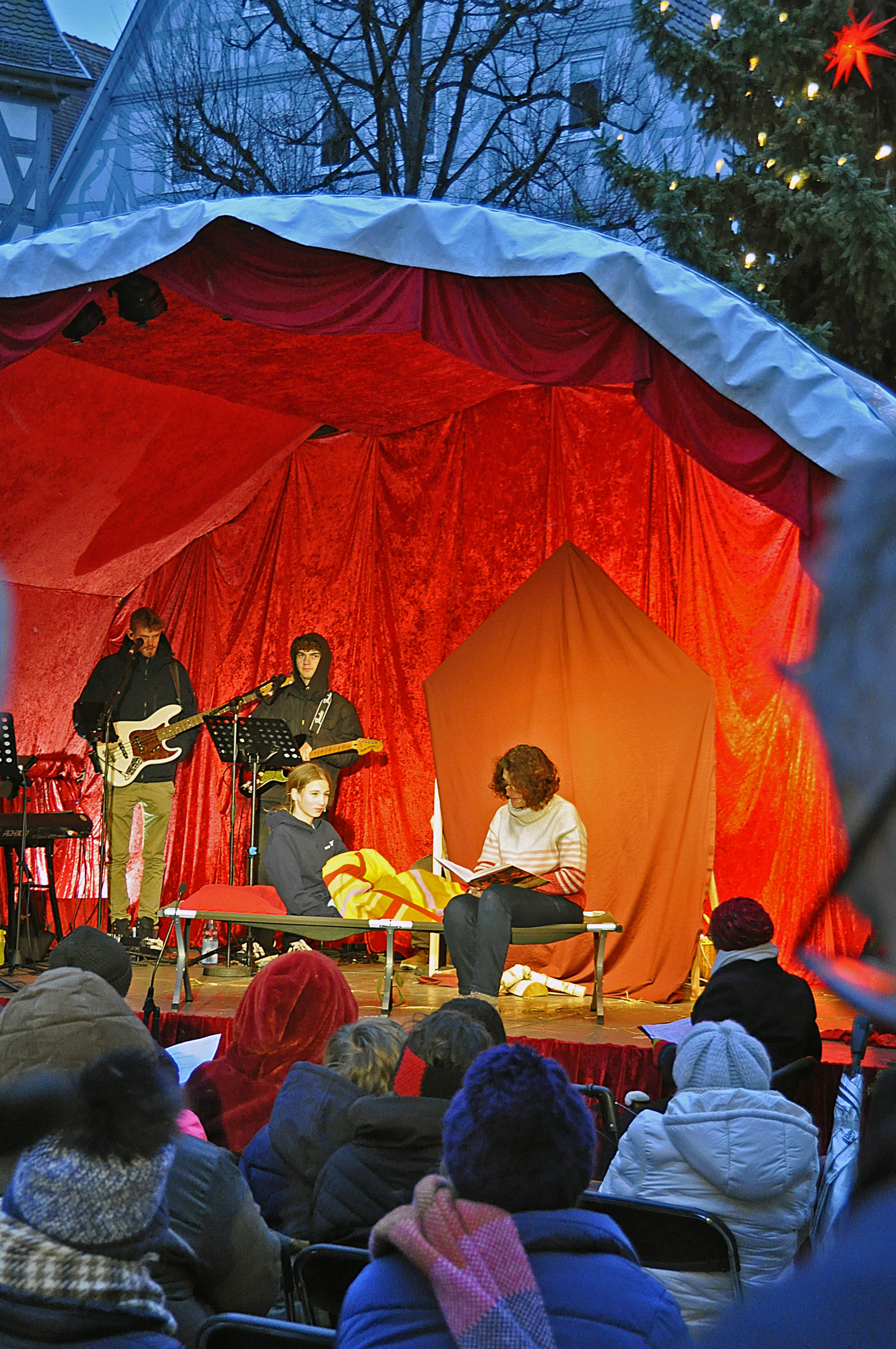 Zum dritten Mal haben wir auf den Waiblinger Marktplatz eingeladen. Trotz kaltem Wind, frostigen Temperaturen und mancher Schneeflocke waren die aufgestellten Stühle bald besetzt. Über 300 Besucher sind zum "etwas anderen Gottesdienst" gekommen.